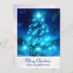 Ett platt julkort som personifieras med ditt namn och meddelande på baksidan. Designad med en modern elektrisk blå julgran. Dekorerad med lampor runtomkring. Bakgrunden har suddiga, urblekta ljus.