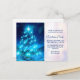 Vykort för julfest med ett modernt elblått Julgran. Dekorerad med ljus överallt. Bakgrunden har avfärdat suddigt ljus.