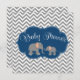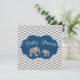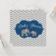 Modern Elephant Chevron Navy Blue Grått Baby Showe Inbjudningar
