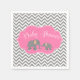 Cute elephant Temed girl Baby duschar pappra servetter. En chic grått-kevron mönster, rosa ram och ett baby-elefantpar från mor.