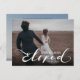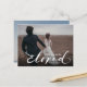 de stora nyheterna med din familj och dina vänner med det här vykortet för utlysning av elopement. Den innehåller ett handskrivet "eloped"-skript och text för att anpassa namn, datum och ett speciellt meddelande eller inbjudan att fira när du återvänder.