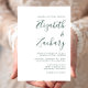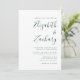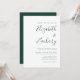 Den här enkla, moderna bröllopsinbjudan ger grönt på vit bakgrund. Lägg till bildens och bildens namn i snyggtens handskriftsgrafi och detaljerna i sans serif-teckensnitt. Den omvända sidan är en matchande skuggning av solid emerald grönt.