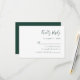 Det här enkla, moderna kortet för hölje i bröllop OSA ger grönt på vit bakgrund. Rubriken visas i snyggtens handskriftsgrafi. Anpassa återstående text i sans serif-teckensnitt. Baksidan är solid emerald grönt.
