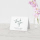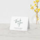 Den här eleganten är ett modernt, minimalistiskt bröllop-tack som du använder för att skriva snyggt i grönt i nödläge på vit bakgrund. Lägg till parets datum namn och bröllop i sans serif-teckensnitt.