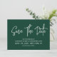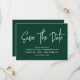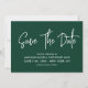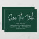 Modern calligraphy sparar datumet i emerald grönt med en digital skannerbar QR-kod för en webbplats eller kontaktinformation på baksidan.