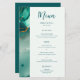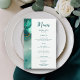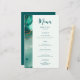En strandtematerad bröllop-menymall som har en målad, abstrakt vattenfärgsscen på en strand och vågar med en flyteffekt från guld bläck (guld är en digital effekt, inte en riktig folie!) och modern kalligrafi. Klassen och eleganten, enkel och modern, det är ett underbart val för ett badbröllop under vilken säsong som helst, för ett modernt par.