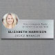 Modern professionell borstat silver faux metallisk foto-ID namn bricka. Ladda upp medarbetarens foto och lägg till företagets namn eller annan text och medarbetarens namn och titel i enkel typografi.