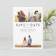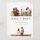 Skapa dina egna bröllop spara datum-kort med 3 av dina favoritfoton. Modern typografi med enkel 3 fotokollage.