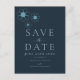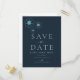 Modern enkel elegant i daisy, marininbjudan till marinblå bröllop spara datum. Tre Coolors retrominimalistiska daisy med i dammig blå konst med typografi av elegant på en mörk marin blå bakgrund. Den här minimalistiska blommigten blått sparar datumkortet och är enkelt att anpassa med hjälp av de enkla mallarna. Idealisk för att ange tonen för en chic i snyggten vintern sommar vår eller höst bröllop. Originalkonstverk av konstnären Catherine Sweetman
