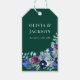Modern Elegant framträder i gröntens minimalistiska bröllopsgåvor som gynnar taggar med blommor i blått lila, enkelt och klassligt vinterbröllop. Underbar för det moderna klassiska bröllop, vintage bröllop och det formella bröllop. Utforska fullt för matchande artiklar. Klicka på knappen Redigera om du vill anpassa designen.
