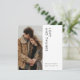 Detta moderna, enkla Tack-fotokort i Bröllop erbjuder en perfekt balans mellan elegans och enkelhet. Den svarta och vita designen, tillsammans med ett foto på personligen, skapar ett tidlöst, hjärtlöst budskap som uttrycker din tacksamhet. Dubblan för en elegant presentation är det här minimalistiska tackkortet idealiskt för alla bröllop som känner sig som rika men snyggten. Den rena typografin och chicens contemporary gör det till ett klassligt val för par att söka ett unikt sätt att säga "tack" till sina gäster. Perfekt för avslappnad eller formellt firande, det här kortet tillför en romantisk och visuell beröring till din uppskattning av bröllop.