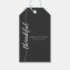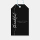 Chic och klassiskt, skripttypen med långt svan placeras elegant lodrätt mot ge i den här presentmärkrn, en unik överstrålning. Anpassa namn och datum för bröllop. Äkta gäster med den här eleganten.