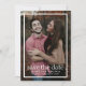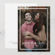 Denna moderna bröllopsfotografiska spara-datum-kort har en djärv ram och text över ett foto som sträcker sig över hela framsidan. Baksidan har en bröllopswebbplats. Klicka på redigeringsknappen för att ändra foton och text för att fullständigt anpassa denna design.