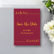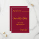 Den här eleganten burgundy och guld bröllop spara datum är perfekt för ett modernt bröllop. Den enkla utformningen har elegant guld-kalligrafi på en burgundisk bakgrund.