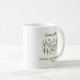 personlig modern enkel camp senterfest mugg i neutral grön och vit med ett tält i skogen är perfekt som en senterfest foto bakgrund. Fira din bröllopsfest i stil med det perfekta campinghelgspartyt temat, det perfekta temat för den nostalgiska vintage 70-talsbruden och hennes brudtärnor.