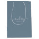 namnteckning chic typography dusty blue Gift Bag med en klassmässig kontakt med namn i ett calligraphy finare-teckensnitt och ditt yrke inneslutet i det framför, ditt fullt i calligraphy side-sidokulerade finare-teckensnitt, karriär och fullt i den namn baksidan.