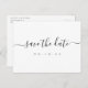 Modern skriptdesign i svartvitt, enkelt och elegant. Underbart spara vykortsdatum för moderna bröllop och andra evenemang. Visa alla matchande delar i samlingen