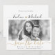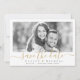 Modern skrivstil "spara datum" i guld färg, med parets foto, enkel och elegant. Fantastiska foto spara datum kort för modern bröllop och andra evenemang.