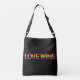 Modern, färglös, vibrerande typografisk grafisk design som säger "Kärlek Wins" i regnbåge i flagga. Enkel, djärv, livfull och stadstrafik.