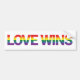 Modern, färglös, vibrerande typografisk grafisk design som säger "Kärlek Wins" i regnbåge i flagga. Enkel, djärv, livfull och stadstrafik.