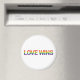 Modern, färglös, vibrerande typografisk grafisk design som säger "Kärlek Wins" i regnbåge i flagga. Enkel, djärv, livfull och stadstrafik.