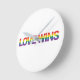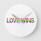 Modern, färglös, vibrerande typografisk grafisk design som säger "Kärlek Wins" i regnbåge i flagga. Enkel, djärv, livfull och stadstrafik.