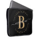 Girly, modern, trendig, elegant, svart och guld monogram första personligen av namn-manuset anpassningsbar monogrammad laptop sleeve. Med ett inledande mongram och ett giftigt namn-skript i ett handskrivet kalligrafteckensnitt med svan och prickad cirkel ram runt ditt namn. Perfekt feminin gåva till syster, mor, flickvän, födelsedag, möhippa, söt 16 födelsedagsfest, mode bloggare, skönhetsalonägare eller någon som kärlek söt giver modern stil.