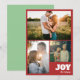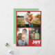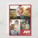 Designen har modern fet text som läser "Glad" med anpassad familjenamnsmall i elegant handskriven stil och julkort med tre foto collage. Den vintage röda med mintgrön lägger till en modern touch, vilket gör det till en perfekt souvenir för dina nära och kära.