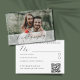 Vi presenterar vårt svarskort för OSA i eleganten, designat med en personlig som gör att din planering i bröllop blir sömlös. Det här sofistikerade kortet innehåller ditt anpassade foto och lägger till ett personligt och hjärtligt inslag. Spänningsaccenterna i grönten ger en aning elegans som helt och hållet kompletterar den enkla men ändå snyggt utformningen. Inkluderad är en praktisk QR-kod som länkar direkt till dina bröllop-uppgifter, skapar det enkelt för dina gäster att svara och få tillgång till viktig information. Den här OSA kort kombinerar praktisk verksamhet med skönhet och ser till att dina gäster lätt kan vara på din speciella dag.