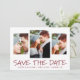 Det här moderna Spara datumkortet är perfekt för tre av dina favoritfoton på förlovningen framtill. På kortets framsida finns foton, namn, datum och plats. På baksidan av kortet kan du lägga till mer information, t.ex. bröllop webbplats, om du har en sådan. Om du behöver ändra designen, t.ex. färg, text eller teckensnitt, kontakta oss på seamistmail@gmail.com. Vi kärlek är en del av dina lycklig minnen.