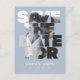 Meddela ditt bröllop-datum i stil med det här moderna "Spara datum"-kortet som innehåller fet typografi och ett bildöverlägg i anpassningsbarna. Färg-alternativen för ren design och elegant gör det till ett tidlöst val för par som vill ha en contemporary men ändå personlig beröring. Anpassa enkelt med namn, bröllop-datum och plats för en viktig skull som dina gäster kommer att göra i kärlek.