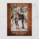 Modern minimalistisk enkel Spara datumvykortet för meddelande om foto-Förlovning - Rustic Wood