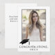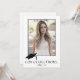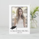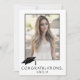 Modern och Enkel Svart-vit Grattis Examen Kort med en Examenskandidats Namn och ett Foto. Examenkort med examensmössa, text Grattis, ett namn och ett foto av examenkandidaten på framsidan - anpassa med ditt namn och ditt foto. Anpassa texten på baksidan av kortet efter dina behov eller radera den.