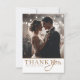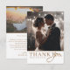 Fira din speciella dag med detta eleganta bröllop tackkort med en krispig vit bakgrund och glänsande guldtext. Denna anpassningsbara design låter dig lägga till två av dina favoritbröllopsfoton tillsammans med ditt eget personliga meddelande. Den guld-på-vit paletten skapar en tidlös och sofistikerad look, perfekt för klassiska, minimalistiska eller moderna bröllopsstilar. Det är ett vackert sätt att tacka dina gäster och skapa ett minne som de kommer att värna om.
