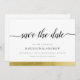 Elegant Enkel Modern Kalligrafi Svart och Vitt Guld Folie Bröllop Spara datum-kort. Om så önskas, lägg till foto på baksidan. För mer avancerad anpassning av denna design, vänligen klicka på "ANPASSA"-knappen ovan.