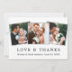 Modern, minimalistisk, enkelt Kärlek och tack Bröllop Bride och Groom 3 Photo-tackkort