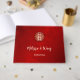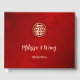 Den kinesiska gästen bok i bröllop har en lyckosymbol för dubbla i guld på en skakande röd bakgrund.
