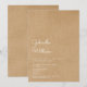 En modern, enkel design med det lyckliga parets namn i ett elegant skrivstil ovanför detaljerna för den speciella förlovningsfesten på en kraft boho-bakgrund. Designad av Thisisnotme©