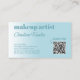 Vacker elegant minimalistisk konstnärlig sminkartist-företagskort. Modernt ljust havsblått företagskort med en modern retro- och minimalistisk akvatisk sjögrön teal- och sofistikerad klassisk vit typsnitt. Klicka på "Anpassa" för att hitta mallen redo att anpassas med ditt unika företagsnamn, yrke och kontaktinformation, text och QR-kod som du väljer. Denna speciella söta och unika design gjordes för dem som gillar sofistikerade klassiska starka designs.