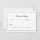 Denna moderna och elegant bröllop OSA kort har marin blå text och gräns i vit bakgrund. Kortets baksida är vit. Detta ingår i samlingen Minimal Vapensköld & Lövs.