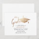 Moderna Enkla Minimalistiska Exameninbjudningar med Examenmössa och stilfullt kalligrafiskrift i guld metallisk falsk folie. Vit Ren Bakgrund, anpassningsbar i valfri färg.