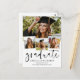 En modern inbjudan från studenten som innehåller ord "student" på framsidan i snyggtens manusgrafi, plus 4 av dina favoritfoton. Lägg till din egen personliga firande-information längst bak. Detta är den minimalistiska svartvita versionen.