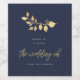 Modern enkel minimalistisk marin Guld Blommigt Brö Vinflaska Etikett
