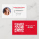 Den här designen har en enkel visitkortsmall med ett modernt minimalistiskt utseende för professionellen, minimala medieikoner för social, trendig vanlig skannerbar QR-kod, ett chic-digitalt kontaktfoto bild, en mobil e-postwebbplatsikon, en vanlig svart-vit, elegant, elegant, snyggt- eller grafikmall, elegant rent modern contemporary, lägg till din egen stil eller Red