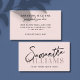 Ett modernt minimalistiskt visitkort med en rosafärgad bakgrund och elegant typsnitt. Designen är ren och enkel och fokuserar på stilfullt skrivsätt och en lugn, neutral färgpalett. Det ger en varm, professionell och sofistikerad look som fungerar bra för personliga varumärken och kreativa företag. Modernt typsnitt namn elegant feminint visitkort idealiskt för evenemangsplanerare, frisörer, sminkartister, bloggare och andra proffs. Lätt att redigera typsnitt och bakgrundsfärger.