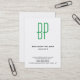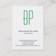 Modern enkel, minimalistisk vit grönt monogram visitkort