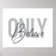 Modern, enkel, minimal typografisk utformning av ett ordspråk som "endast tror" på tonerna från grått färg. Coola, stadsplanering, trendig grafik vektorkonst med handskriven typografi.