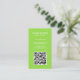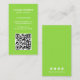 Det moderna affärskortet för lodrät med ett enkelt och minimalistiskt stil med din QR-kod på medieikoner på framsidan och social på baksidan. Allt inslag är i vitt över en grön neonkalkbakgrund. En enkel och minimal design som kan anpassas för alla professioneller inom företaget.
