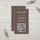 Det moderna affärskortet för lodrät med ett enkelt och minimalistiskt stil med din QR-kod på medieikoner på framsidan och social på baksidan. All inslag är i vitt över en brun bakgrund. En enkel och minimal design som kan anpassas för alla professioneller inom företaget.