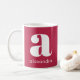 Modern enkel Rosa Monogram Initial Brev Namn-kaffe Mugg. Denna moderna Monogrammade ursprungliga Magenta av Muggen vid Rosan Brev i Namn ligger i en roligt som är mycket liten, nämligen stil. Den här roligten låt oss att du lägger till ditt ursprungliga namn och ditt namn på det här kaffet mugg. Mugg har magenta rosa som skriver på en vit bakgrund. Denna minimala utformning av modet är utmärkande för årets färg och kommer att göra en påstående i mode på kontoret, hemma eller som gåva. Teckensnittet färg och stil kan anpassas genom att klicka på Anpassa. Kontakta mig på truullc@gmail om du vill matcha produkter eller hjälp med anpassning.